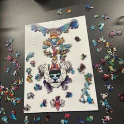Po ukończeniu powstaje wielobarwny obraz wilka, który można wykorzystać jako stylową dekorację ścienną. Każdy element jest unikatowy, niektóre mają kształty zwierząt, co czyni układanie jeszcze ciekawszym. Puzzle to świetny prezent – dostarczane są w eleganckim, firmowym pudełku oraz dodatkowo w ochronnym kartonie transportowym.