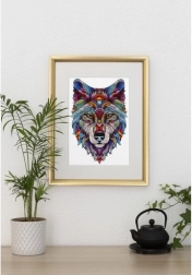 Po ułożeniu otrzymasz wielobarwną głowę wilka z bogatymi wzorami, która stanie się wyrazistym elementem wystroju Twojego wnętrza.