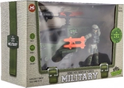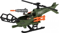 Ten realistyczny zestaw wprowadza dzieci w ekscytujący świat misji lotniczych. Zielony helikopter z czarnymi wirnikami i pomarańczowymi pociskami, szczegółowo opracowana kabina oraz ruchoma figurka żołnierza wspierają wyobraźnię, małą motorykę i zabawę zespołową.