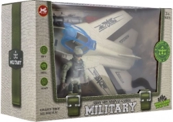 Ten atrakcyjny wojskowy zestaw zapewnia dzieciom godziny emocjonującej zabawy. Realistyczny myśliwiec z otwieraną osłoną kabiny i zdejmowanymi akcesoriami, wraz z figurką żołnierza w pełnym rynsztunku, wspierają zabawę w odgrywanie ról oraz rozwój wyobraźni.