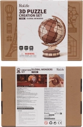 Ta 3D drewniana układanka Rolife Globus zachwyci Cię historycznym designem i konstrukcją, która symuluje klasyczny globus. Jest nie tylko stylowym dodatkiem do wnętrza, ale również świetnym narzędziem do rozwoju umiejętności logicznych i motorycznych. Odkryj skarby jak konstelacje znaków zodiaku i symbole astronomiczne inspirowane praskim zegarem astronomicznym.