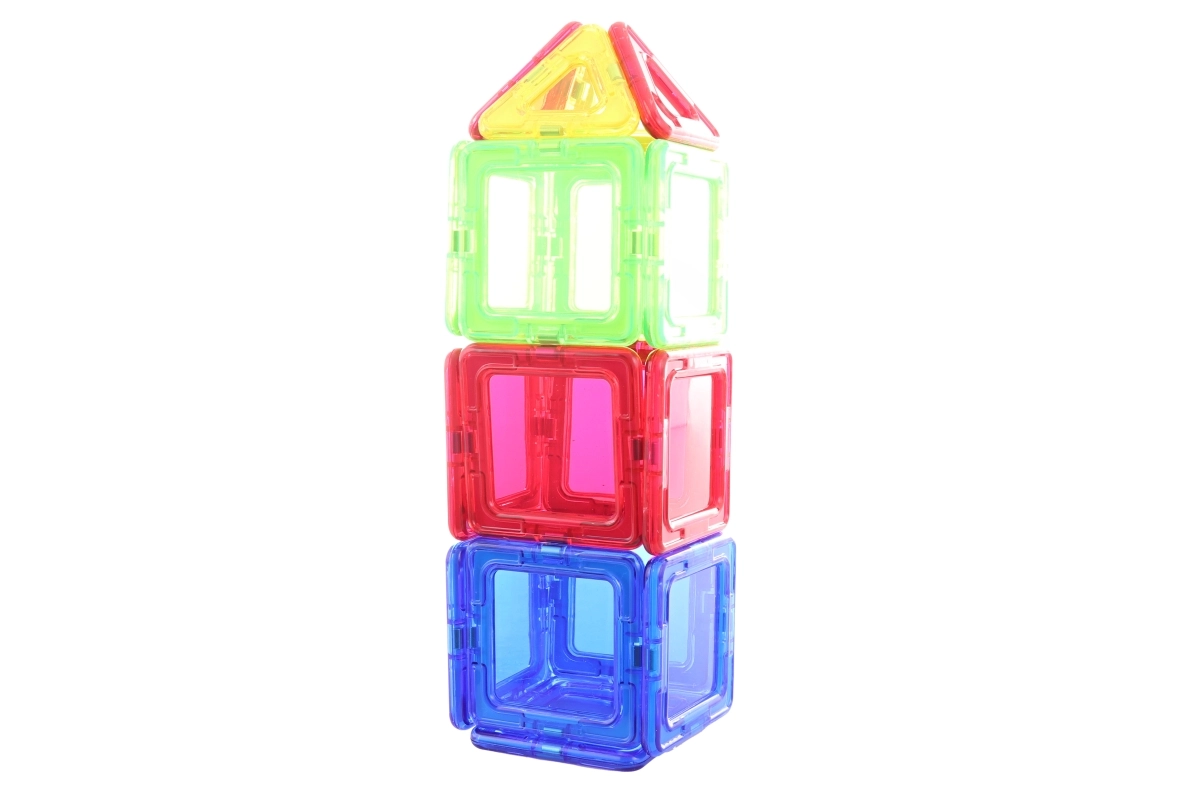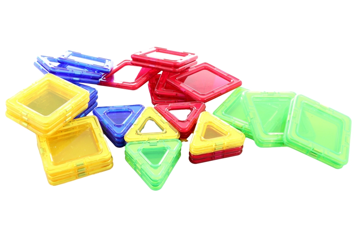 Zawiera kwadraty, trójkąty i prostokąty, które łatwo łączą się dzięki magnetycznym złączom.