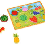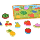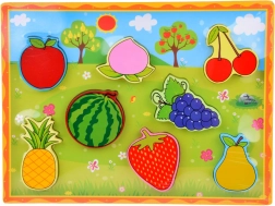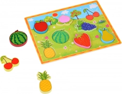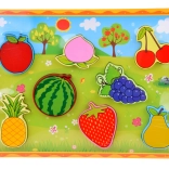 Drewniana układanka Owoce to idealna zabawka dla dzieci, które chcą nauczyć się rozpoznawać różne rodzaje owoców. Zabawka wspiera: