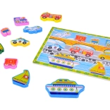 Ta drewniana układanka została zaprojektowana tak, by wspierać rozwój dziecięcych umiejętności, a jednocześnie oferować mnóstwo zabawy. Każdy element puzzla ma kształt odpowiadający otworowi w planszy, co pozwala dzieciom ćwiczyć rozpoznawanie kształtów.