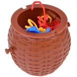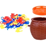 Plastikowy kosz z pokrywką jest świetny nie tylko do zabawy, ale także jako przestrzeń do przechowywania małpek po zakończeniu gry.