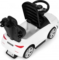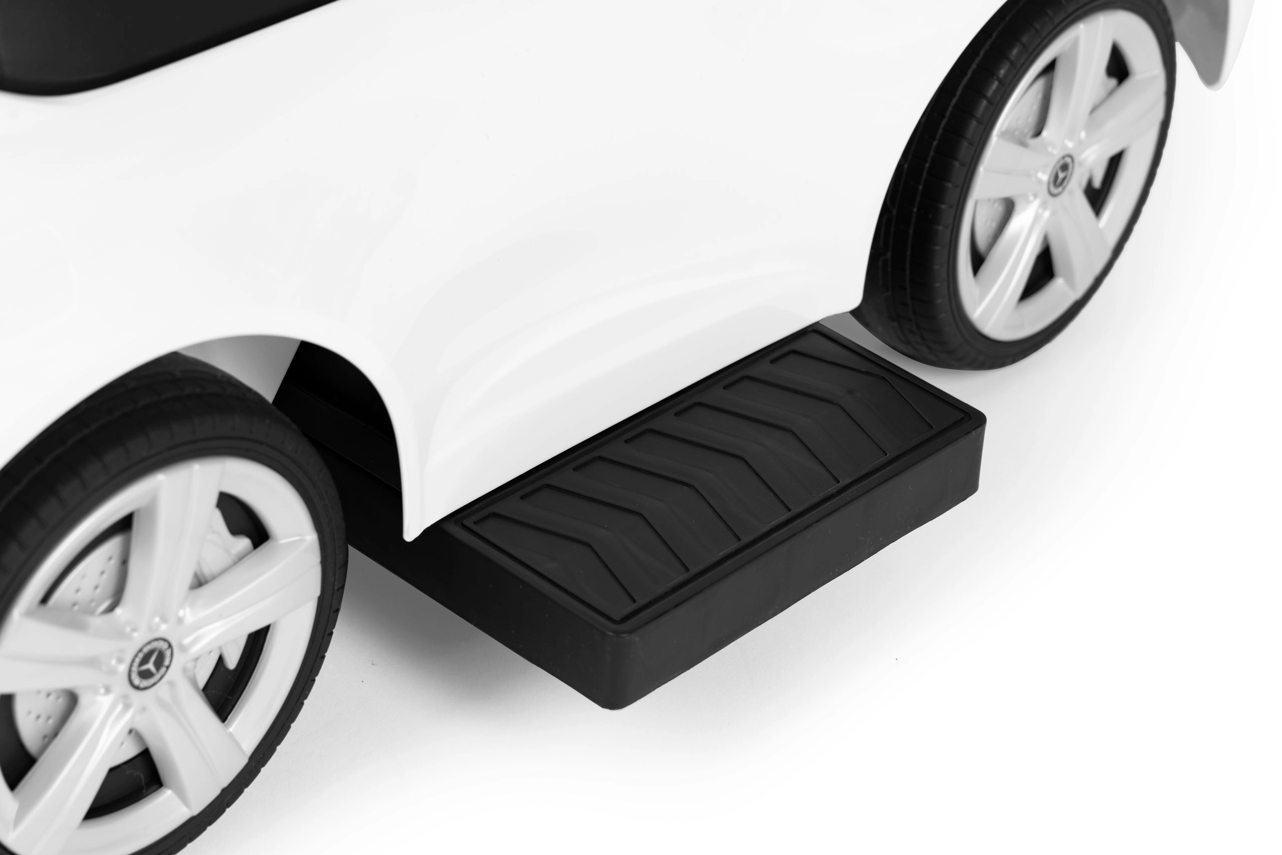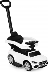 Stylowy jeździk z licencją MERCEDES C‑Class dla dzieci od 12 miesięcy oferuje bezpieczną i stabilną konstrukcję, wygodne oparcie z rączką do prowadzenia, barierki bezpieczeństwa oraz interaktywną kierownicę z klaksonem i dźwiękiem rozruchu. Do tego schowek pod siedziskiem i element przeciw przewróceniu. Maksymalne obciążenie 25 kg.