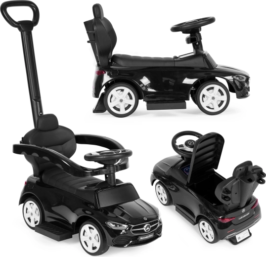 Stylowy jeździk z licencją Mercedes zapewnia dzieciom od 12 miesięcy bezpieczną i radosną jazdę. Oferuje wytrzymałą konstrukcję, barierki zabezpieczające, rączkę prowadzącą dla rodziców, schowek pod siedziskiem oraz interaktywną kierownicę z klaksonem i dźwiękiem rozruchu silnika. Dzięki systemowi 3w1 jeździk rośnie razem z dzieckiem i wspiera rozwój motoryki oraz bezpieczne poruszanie się na zewnątrz.