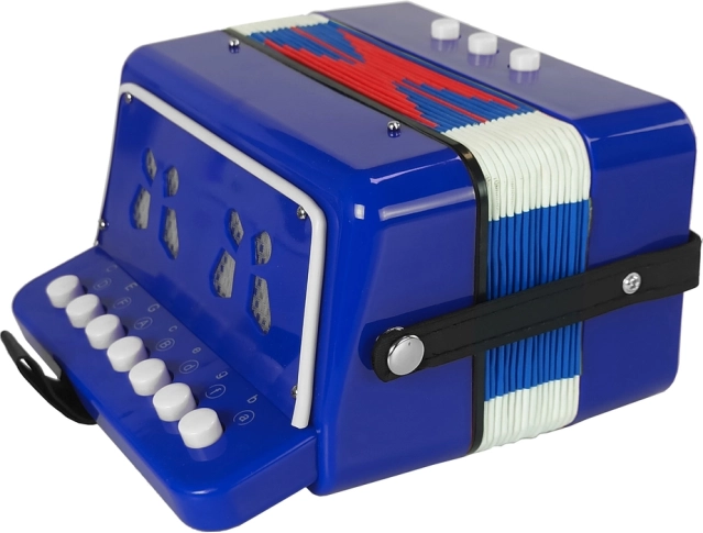 Muzyczna harmonijka to fantastyczna zabawka dla dzieci, które lubią muzykę i dobrą zabawę. Instrument wygląda jak prawdziwy. Doskonale rozwija motorykę i słuch dziecka oraz przygotowuje je do gry na prawdziwym instrumencie. Zasada działania harmonii jest taka sama jak w prawdziwym instrumencie: aby wydobyć dźwięk, należy ją rozkładać i składać; harmonijka ma przyciski basowe i melodyczne oraz uchwyt.