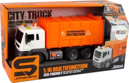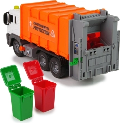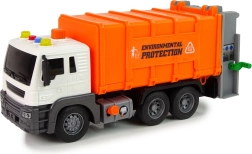 Odkryj zabawną i edukacyjną zabawkę, która wspiera odpowiedzialne podejście do natury. Pomarańczowa śmieciarka jest dopracowana w detalach, ma funkcjonalną skrzynię i dzięki prostemu mechanizmowi dzieci wysypią zawartość koszy do kontenera. Efekty dźwiękowe potęgują realizm zabawy, a napęd frykcyjny zapewnia żwawą jazdę bez baterii w kołach.