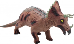 Odkryj realistyczną zabawkę dla małych paleontologów: dużą figurkę triceratopsa z efektami dźwiękowymi, wykonaną z miękkiej gumy dla bezpiecznej i przyjemnej zabawy. Szczegółowa tekstura skóry, wyraziste żółte oczy oraz możliwość ustawiania różnych pozycji czynią z tej zabawki świetny prezent dla dzieci od 3 lat.