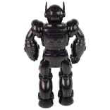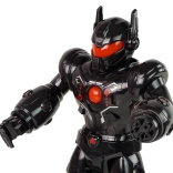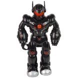 Interaktywny czarny robot dla dzieci oferuje chód do przodu, efekty świetlne i dźwięki strzałów, które pobudzają wyobraźnię i rozwijają koordynację. Wytrzymałe wykonanie, nowoczesny wygląd i bezpieczny design zapewniają godziny świetnej zabawy.