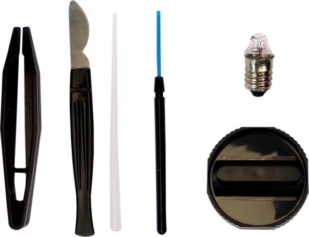 Mikroskop zasilany jest dwiema bateriami AA 1,5 V (brak w zestawie). Zabawka odpowiednia dla dzieci powyżej 8 lat. Mikroskop posiada certyfikat CE i spełnia normę EN 71. Zapakowany w kartonowe pudełko z przezroczystą witrynką, idealny na prezent.