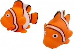 Z tym zestawem gumowych rybek każda kąpiel stanie się przygodą. Zestaw zawiera kilka morskich zwierzątek, które przynoszą zabawę i pomagają dzieciom kochającym kąpiel czuć się bezpiecznie i szczęśliwie. Zestaw zawiera rybkę Nemo, rybkę błazenka, żółtą rybkę, niebieską rybkę i czerwoną rybkę, które wszystkie wystrzeliwują wodę z małych otworów, gdy się je naciska.