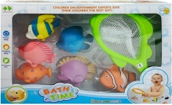 Ten wesoły i kolorowy zestaw jest idealny nie tylko do wanny, ale także do ogrodowego basenu. Wymiary siatki to 24,5 cm x 13 cm x 2 cm, a wymiary rybek to 8 cm x 6 cm x 6 cm. Wymiary opakowania to 35 cm x 25 cm x 6,5 cm.