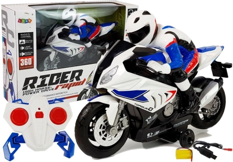 Motocykl jest zasilany akumulatorem 4,8 V (w zestawie), a pilot dwiema bateriami 1,5 V typu AA (brak w zestawie). Zabawka przeznaczona dla dzieci powyżej 3 roku życia. Zestaw posiada certyfikat CE i spełnia normę EN 71. Zapakowany w kartonowe pudełko z przezroczystą witryną, idealne na prezent.