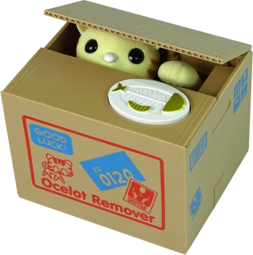 Dzięki tej wspaniałej zabawce Twoje dziecko nauczy się oszczędzać w zabawny sposób. Po naciśnięciu przycisku uruchamia się mechanizm, w którym kotka podnosi wieczko skarbonki i łapką wciąga monety do środka.