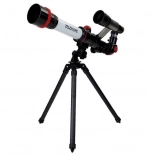 Ten edukacyjny teleskop dla dzieci został zaprojektowany, aby rozbudzić zainteresowanie gwiazdami u Twoich pociech. Światło przechodzi przez soczewkę, gdzie jest ogniskowane z pomocą wklęsłego lustra, co umożliwia obserwację przez pionowy okular. Teleskop jest intuicyjny w montażu i dzięki niskiej masie łatwo go przenieść.