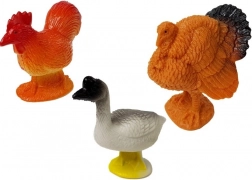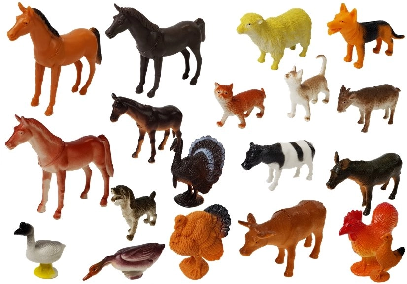 Wygląd i ubarwienie przypominają realistyczne odpowiedniki. Cały zestaw zawiera około 20 figurek oraz matę z krajobrazem pięknej, dużej farmy. Z pewnością ucieszy miłośników przyrody. Na macie znajduje się piękny wiejski dom i duże pola dla zwierząt. Zestaw zawiera m.in. krowy, konie, owce, indyki, psa, kota, koguta, tukana, gęś.
