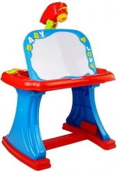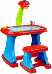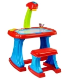 Dzięki temu edukacyjnemu stolikowi dzieci mogą rozwijać swoje umiejętności artystyczne i kreatywność. Stół jest wyposażony w projektor, który wyświetla różne kształty do rysowania, oraz magnetyczne litery i cyfry do nauki.