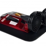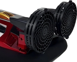 Czy pojazd może poruszać się po wodzie bez śrub lub po ziemi bez kół? To możliwe dzięki dwóm dużym śmigłom, które odpychają powietrze z taką siłą, że poduszkowiec unosi się – zasada podobna do silnika odrzutowego, z tą różnicą, że gwałtownie wyrzucanym medium jest powietrze. Dzięki ślizgowej powierzchni może poruszać się po gładkim podłożu. Sterowany poduszkowiec ma specjalną konstrukcję zapobiegającą przedostawaniu się wody do wnętrza. Przycisk startu znajduje się na dachu łodzi. Opływowy kształt motorówki przyciąga uwagę. Prędkość łodzi wyścigowej sięga do 20 km/h. Nadaje na częstotliwości 2,4 GHz. Pilot jest wygodny, świetnie leży w dłoni, umożliwia sterowanie do przodu, do tyłu oraz na boki.