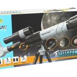 Odkryj świat astronomii – idealny prezent dla małych naukowców, który zachęci ich do poznawania tego, co znajduje się na niebie. Teleskop działa w oparciu o zasadę załamania światła i ogniskowania. Gdy światło przechodzi przez obiektyw, jest zbierane i załamywane w wklęsłym lustrze. Dzięki temu możemy obserwować przez pionowy okular.