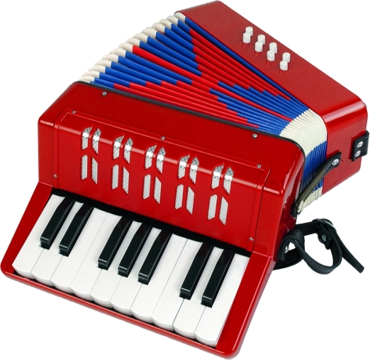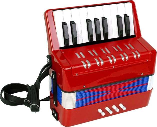 Odkryj radość z muzyki z dziecięcą harmonią, która wygląda jak prawdziwy instrument i zaskakująco dobrze brzmi. Wspiera motorykę, słuch muzyczny i naturalną miłość do muzyki. Dzięki 17 klawiszom i 8 basowym przyciskom dzieci łatwo opanują pierwsze melodie i rytmy.