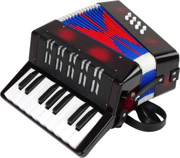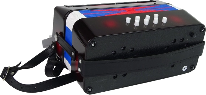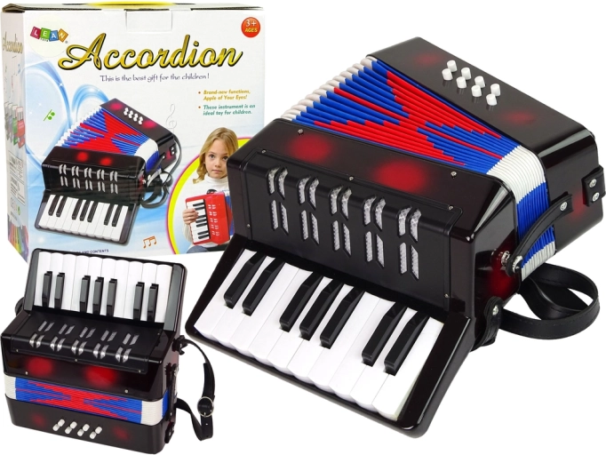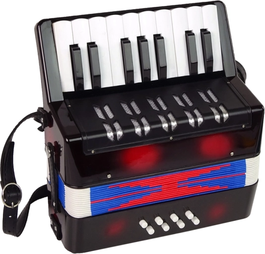 Mechanika miecha i przycisków wiernie naśladuje prawdziwy akordeon, dzięki czemu dzieci szybko zrozumieją zasadę gry i stworzą piękne dźwięki.