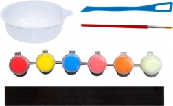- Forma z motywami sów, opakowanie gipsu, 6 farb, pędzelek, samoprzylepny płaski magnes (15 × 2 cm), instrukcja