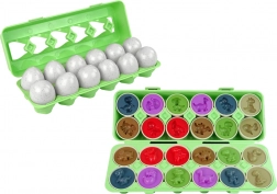 Podczas układania dzieci ćwiczą koordynację ręka–oko, percepcję kolorów i kształtów oraz poprawiają pamięć i koncentrację. Trwałe i bezpieczne materiały gwarantują długą żywotność i beztroską zabawę. Kompaktowe, zamykane pudełko w kształcie wytłoczki na jajka ułatwia przechowywanie i przenoszenie.