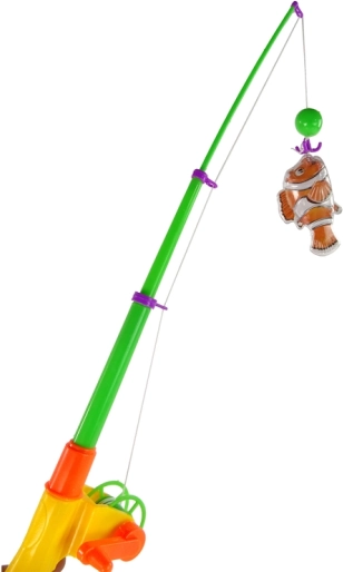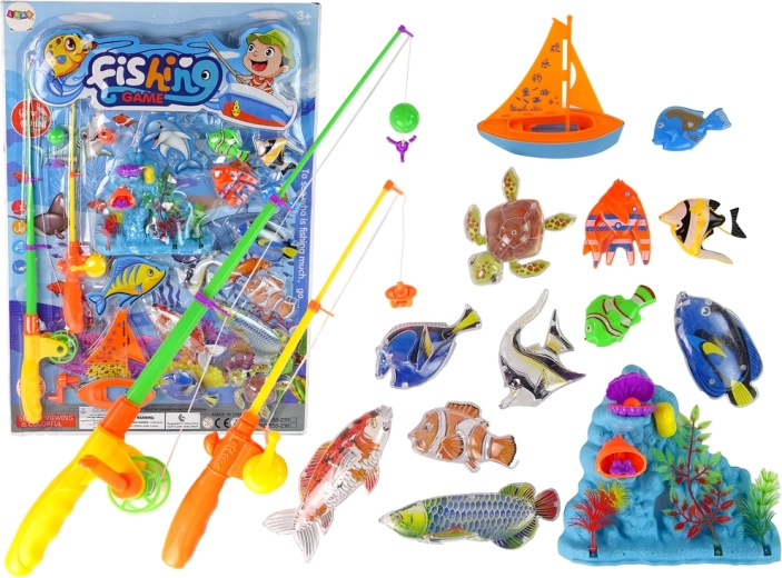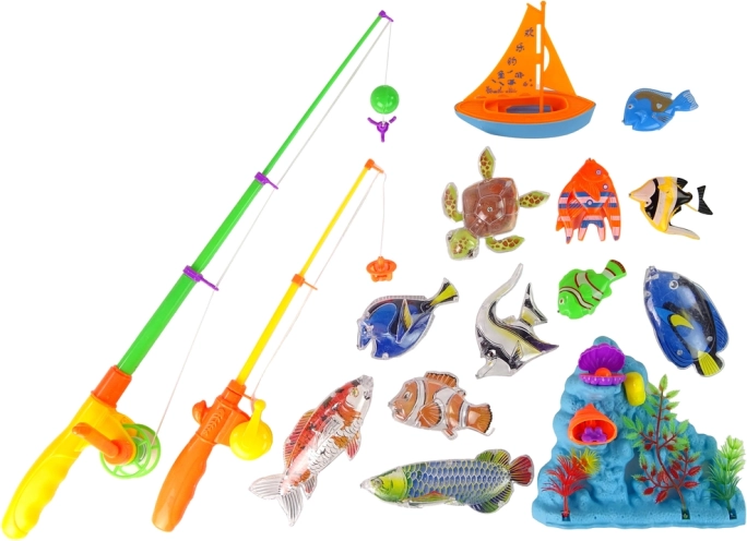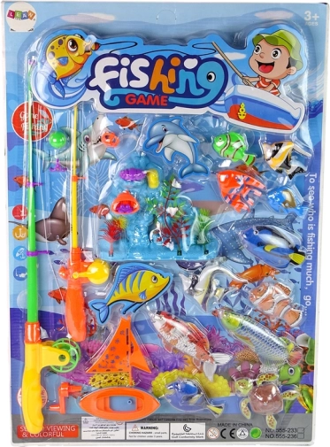 Zestaw zawiera dwie wędki, 11 rybek oraz akcesoria. Wędki mają zamontowaną korbkę/kołowrotek, dzięki któremu żyłkę można opuszczać lub podnosić, a na końcu znajduje się magnes do łowienia rybek. Wymaga to od małego wędkarza sporej precyzji.