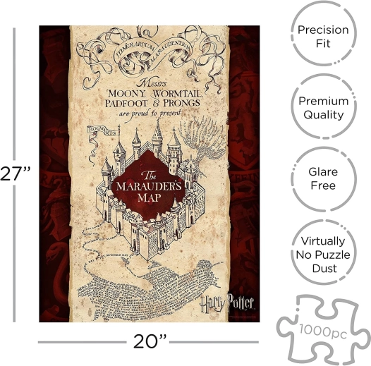 Przenieś się do świata magii z dopracowanym motywem Mapy Huncwotów. Puzzle marki AQUARIUS słyną z precyzyjnego nadruku, wysokiej jakości elementów oraz tematów z popkultury – od filmów i seriali po ikony muzyki. Ten motyw ucieszy każdego miłośnika Harry’ego Pottera i fanów wyzwań.