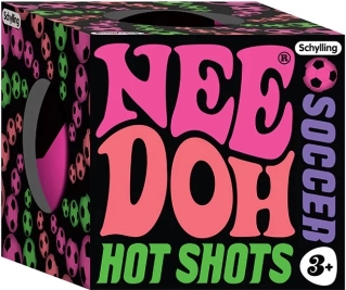 Ściskana piłka Nee Doh z motywem piłki nożnej do redukcji stresu. Dostępna w trzech kolorach, odpowiednia dla dzieci od 3 lat.