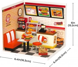 Ta miniatura domku to doskonały sposób, aby cieszyć się klasycznym klimatem fast foodu w domowym zaciszu. Wyrusz w kreatywną podróż konstrukcyjną, składając restaurację z ladą obsługową, witryną i miejscami do siedzenia. Każdy element pewnie do siebie pasuje, co zapewnia stabilną i trwałą konstrukcję bez potrzeby użycia kleju.