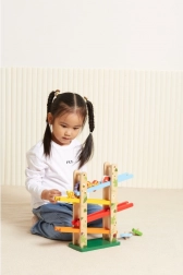Kolorowa trasa z wieloma poziomami zapewnia dzieciom nieskończone możliwości zabawy.