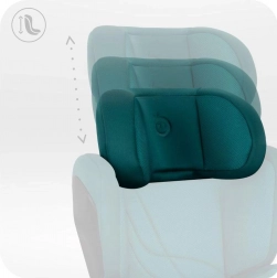 Głęboki, miękki i regulowany na wysokość zagłówek wraz z ochroną boczną skutecznie absorbuje energię uderzenia i chroni głowę oraz szyję dziecka.