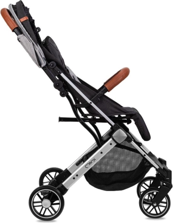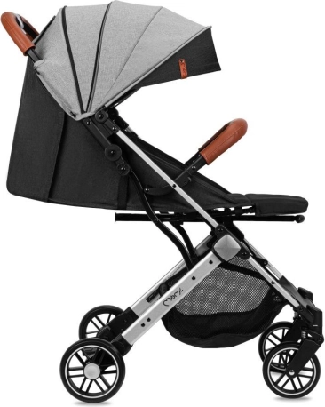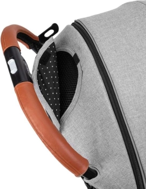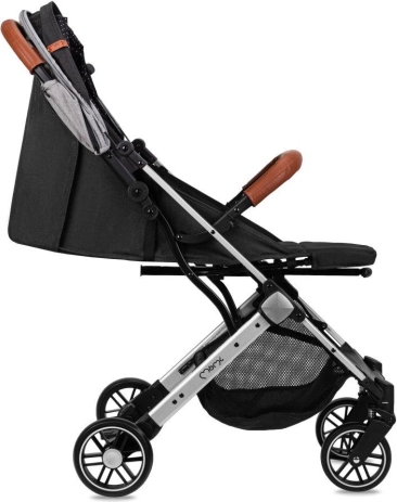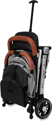 Wózek łatwo składa się do małego, samodzielnie stojącego pakietu. Praktyczna wysuwana rączka pozwala ciągnąć złożony wózek jak walizkę. Koła EVA z amortyzacją wszystkich czterech kół zapewniają płynną jazdę również na miejskich nierównościach. Bezpieczeństwo wspierają 5‑punktowe pasy, odpinana barierka i niezawodny hamulec nożny.