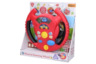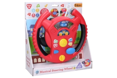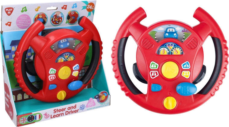 Interaktywna kierownica Playgo zapewnia dzieciom świetną zabawę w prowadzenie w mini miasteczku. Obrotowy przełącznik na spodzie kierownicy służy do włączania, pośrodku znajduje się klakson, po prawej dźwignia zmiany biegów do odgłosów jazdy, a na obręczy kierownicy małe przyciski z tonami i melodiami. Dzieci pokochają realistyczne efekty przypominające prawdziwy samochód, jednocześnie rozwijając koordynację i wyobraźnię.