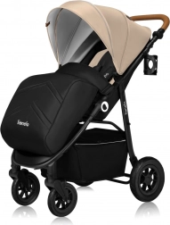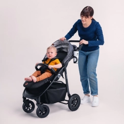 Lionelo Natt to solidny i komfortowy wózek, który poradzi sobie zarówno na miejskich chodnikach, jak i na nieutwardzonych drogach. Dzięki pompowanym kołom z głębokim bieżnikiem oraz obrotowym przednim kołom 360° z blokadą jazda jest stabilna i płynna. Regulowane oparcie do pełnej pozycji leżącej (powierzchnia 92 cm) oraz 5‑stopniowy podnóżek zapewnią wygodę od drzemki po ciekawe obserwowanie świata.
