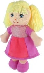Urocza szmaciana lalka Culinka z blond kucykami w różowo‑fioletowej sukience to idealna pierwsza lalka dla najmłodszych. Dzięki mięciutkiemu ciałku i delikatnej tkaninie świetnie nadaje się do tulenia, zabawy i zasypiania. Bezpieczna od 0 miesięcy, lekka i łatwa do trzymania w dziecięcych rączkach.