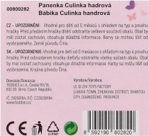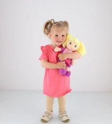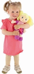 Cała lalka jest z miękkiej, przyjemnej w dotyku tkaniny, odpowiedniej także dla najmłodszych niemowląt.