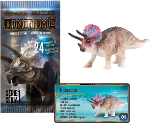 Figurki DINOTIME łączą zabawę z nauką. W każdym osobnym woreczku znajdziesz jedną plastikową figurkę dinozaura oraz kartę z informacjami o danym gatunku. Dzięki detalicznemu wykonaniu i realistycznym kolorom idealnie nadają się do zabawy, kolekcjonowania i nauki.