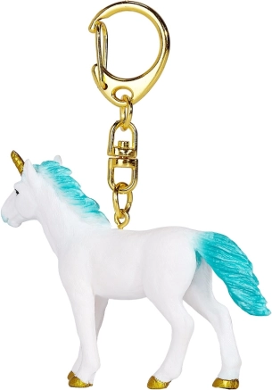 Biały jednorożec z turkusową grzywą oraz złotym rogiem i kopytami doda kluczom i torbom wyjątkowego sznytu.