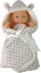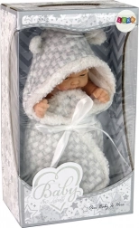 Ta urocza lalka jest ubrana w ciepłą szarą rożkę z białą kokardą, dzięki czemu wygląda jak prawdziwe niemowlę. Dzieci podczas zabawy uczą się empatii, odpowiedzialności i rozwijają małą motorykę, kiedy opiekują się lalką. Rozmiar 24 cm jest świetny do łatwego trzymania i przenoszenia.