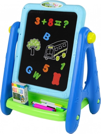 Edukacyjna tablica 2 w 1 Niebieska kredowa pisaki