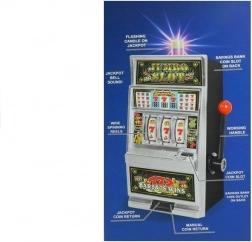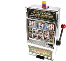 Twoje dziecko lubi wielofunkcyjne zabawki? Wybierz automat do gry przypominający jednorękich bandytów prosto z filmowych kasyn, którego funkcjonalność łącząca zabawę z małą skarbonką na pewno je zaskoczy. Prezentowany automat jest wierną repliką najpopularniejszej gry we wszystkich kasynach. Do świetnej zabawy nie potrzeba wiele – wystarczą drobne monety, które dziecko wrzuci do automatu.