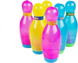Kolorowe kręgle przyciągają uwagę i czynią grę zabawną oraz atrakcyjną dla najmłodszych graczy.