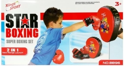 Ten zestaw zawiera rękawice i ochraniacze, idealne dla początkujących małych bokserów.