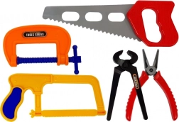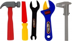 Zestaw zawiera narzędzia wykonane z bezpiecznego i trwałego plastiku w żywych kolorach, które imitują prawdziwe przedmioty.