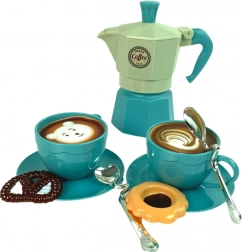 Ten dziecięcy zestaw do kawy w pięknym turkusowym kolorze jest idealny do zabawy w kawiarnię lub domowe przyjęcie. Zestaw zawiera kolorowe wzory na kawę, co pozwala małym baristom przygotowywać kawę z różnymi dekorami. Dołączony ekspres sprawia, że wszystko wygląda profesjonalnie.