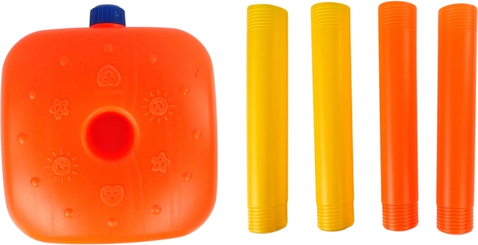 .Prezentowany produkt to zestaw do koszykówki do gry w pomieszczeniach i na zewnątrz. Podstawa ma otwór z korkiem – do odpowiedniego dociążenia stojaka podczas gry. Wewnątrz można łatwo nalać wody lub wsypać piasek, a kosz się nie przewróci. Całość wykonana jest z plastiku.